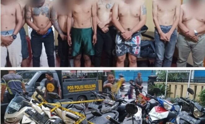 “Dugaannya ‘debt collector’. Mereka sudah diamankan dan dilakukan pendataan di Polsek Pameungpeuk dan Polsek Pameungpeuk mengamankan 10 orang terduga dan berhasil mengamankan 11 Unit Sepeda Motor serta 2 buah senjata tajam” kata Kapolsek Pameungpeuk AKP Asep Dedi.SH