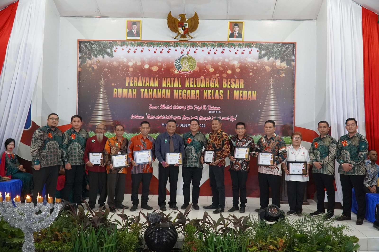 Tak lupa, panitia Natal memberikan piagam penghargaan khusus kepada yayasan pelaksana kegiatan pembinaan rohani Kristen dan pemberian tali kasih bagi Warga binaan yang rajin beribadah di Gereja Rutan Kelas I Medan. Rangkaian Perayaan Natal kali ini di tutup dengan ramah tamah yakni bersalam-salaman sembari mengucapkan Selamat Natal.