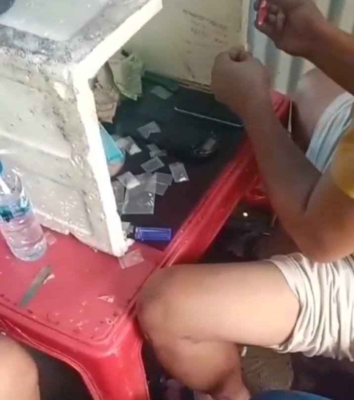 Gambar-gambar yang tersebar menunjukkan orang-orang menikmati sabu, menimbang narkoba jenis sabu, dan dua rekan lainnya yang dengan santainya memantau situasi tersebut.