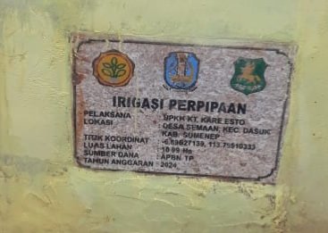 Sumenep, Kamis 23/01/2025 – Proyek irigasi perpipaan yang menggunakan anggaran negara dari APBN yang baru saja dimulai pada tahun 2024, kini menuai perhatian. Proyek yang bertujuan untuk membantu kelompok tani di Desa Semaan, Kecamatan Dasu, Kabupaten Sumenep, terkesan belum selesai dengan baik, meskipun baru beberapa bulan dikerjakan. Penerima manfaat dari proyek ini, yakni Kelompok Tani Kare Esto, mengungkapkan bahwa mesin irigasi yang dipasang sudah rusak.