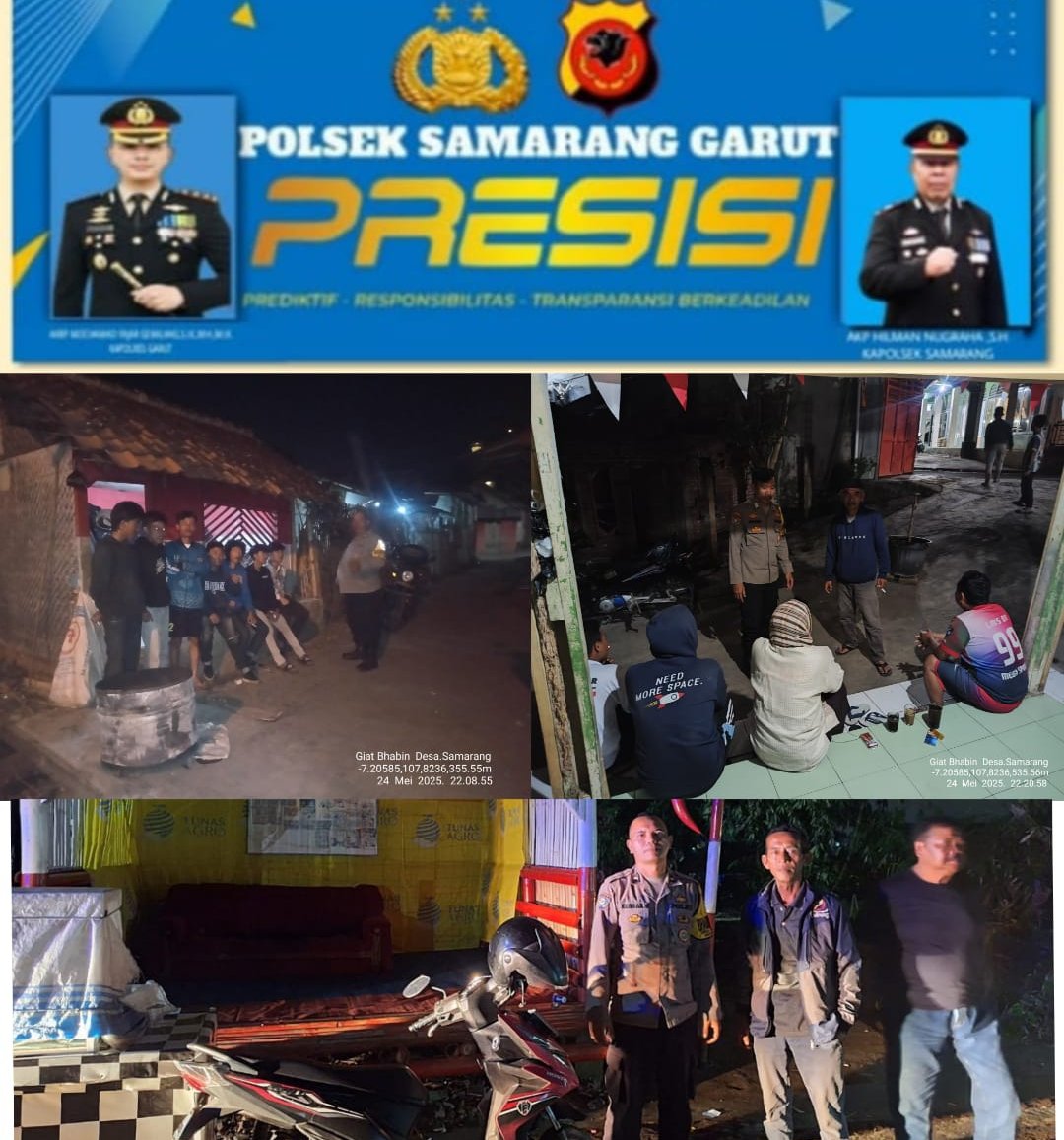 Kapolres Garut AKBP Mochamad Fajar Gemilang.,S.I.K.,M.H.M.I.K. melalui Kapolsek Samarang AKP Hilman Nugraha.,S.H. Bersama 3 Personil Aiptu Gunawan Dwi Np. Aiptu Kondar Sihobing. Bripka Gugun Guntiar telah Melaksanakan patroli serta memberikan himbauan dan arahan kepada petugas ronda malam.