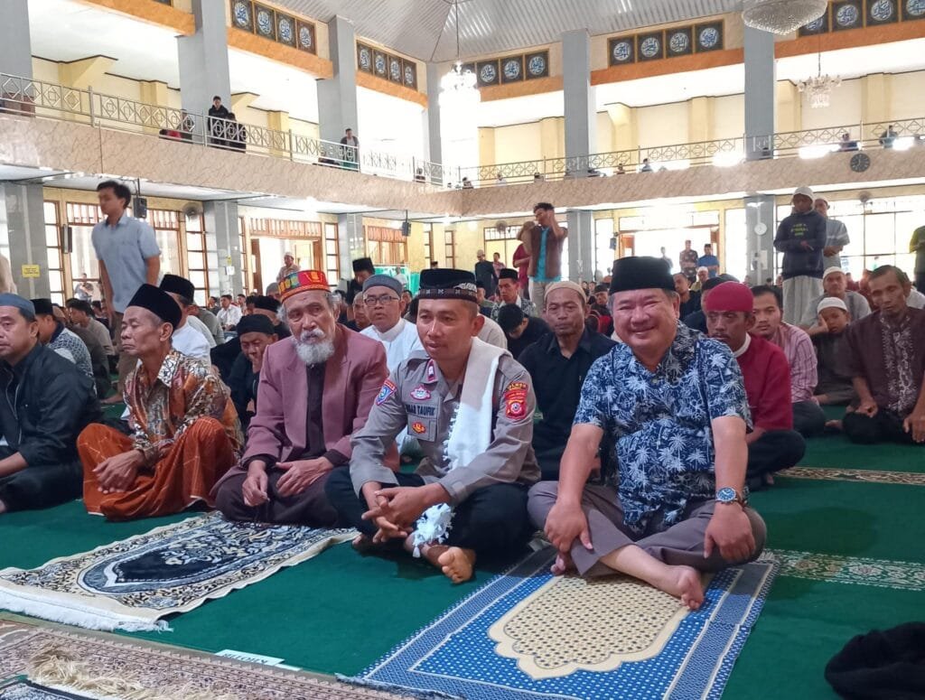 Garut | Dalam rangka meningkatkan kesadaran masyarakat tentang pentingnya keamanan dan ketertiban Aiptu Umar S.Sos melaksanakan kegiatan sambang sekaligus menjadi imam dan khotib pada pelaksanaan Shalat Jumat di Masjid Agung Garut. Jumat (27/12/2024).