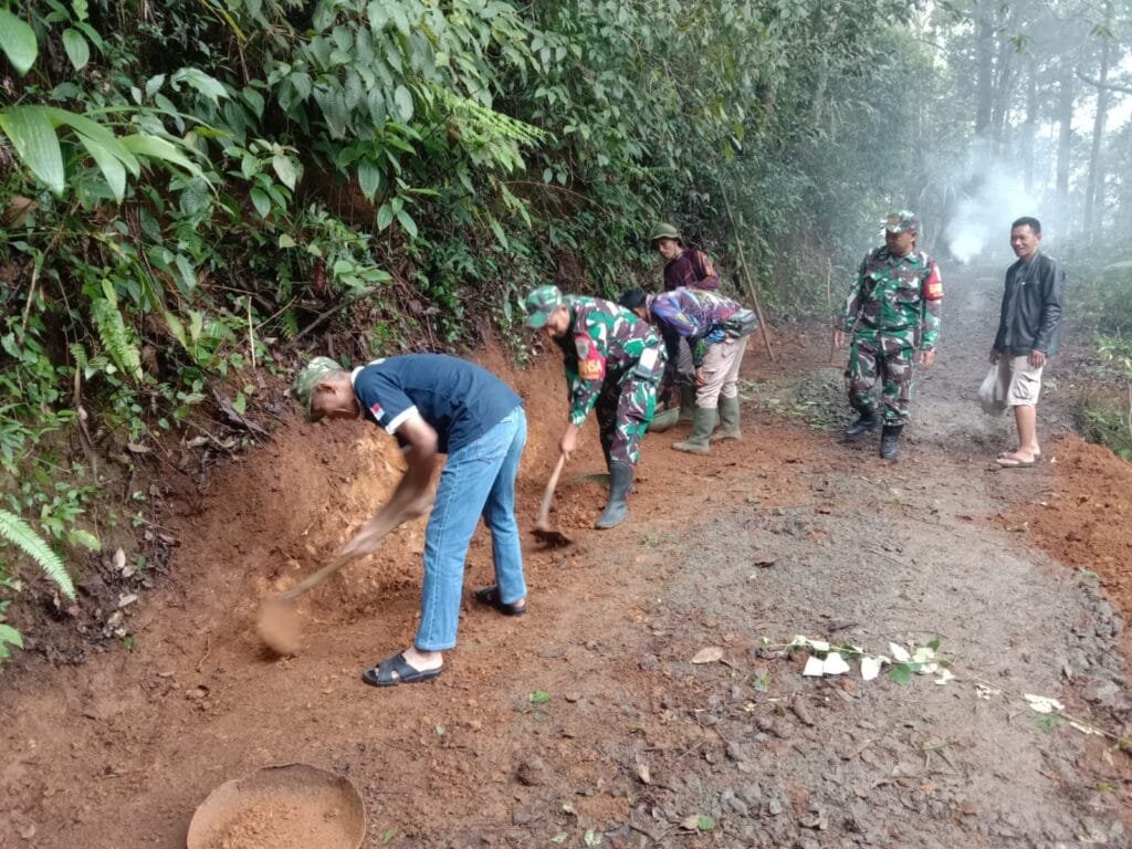Sumedang,- Anggota Koramil 1015/Cibugeul Kodim 0610/Sumedang melaksanakan kegiatan Pembersihan Lingkungan jalan di Dusun Sirnarasa Rt 04 Rw 01 Desa Cibugel Kecamatan Cibugel Kabupaten Sumedang.Kamis(25/07/2024)