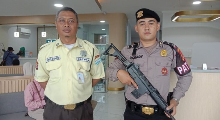 Layanan ini terus disampaikan secara intens oleh masyarakat terutama para warga yang berada di kantor Perbankan. Ini yang dilakukan oleh Anggota Sat Samapta Polres Ciamis Polda Jabar yakni Bripda Raffi yang bertugas pengamanan di Bank BSI Ciamis, Kabupaten Ciamis, Jawa Barat, Senin (2/6/2025).