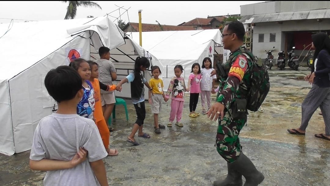 Sumedang- Dalam rangka penanganan bencana pada masa tanggap darurat, Babinsa Sukadana Koramil 1014/Cimanggung Kodim 0610/Sumedang Sertu Achmad Nursalam memberikan trauma healing kepada warga yang terkena dampak angin puting beliung yang terjadi pada hari Rabu, 21 Februari 2024.