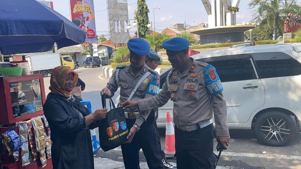 Dalam kegiatan bakti sosial ini Si Propam Polres Garut Kota memberikan bantuan berupa sembako.