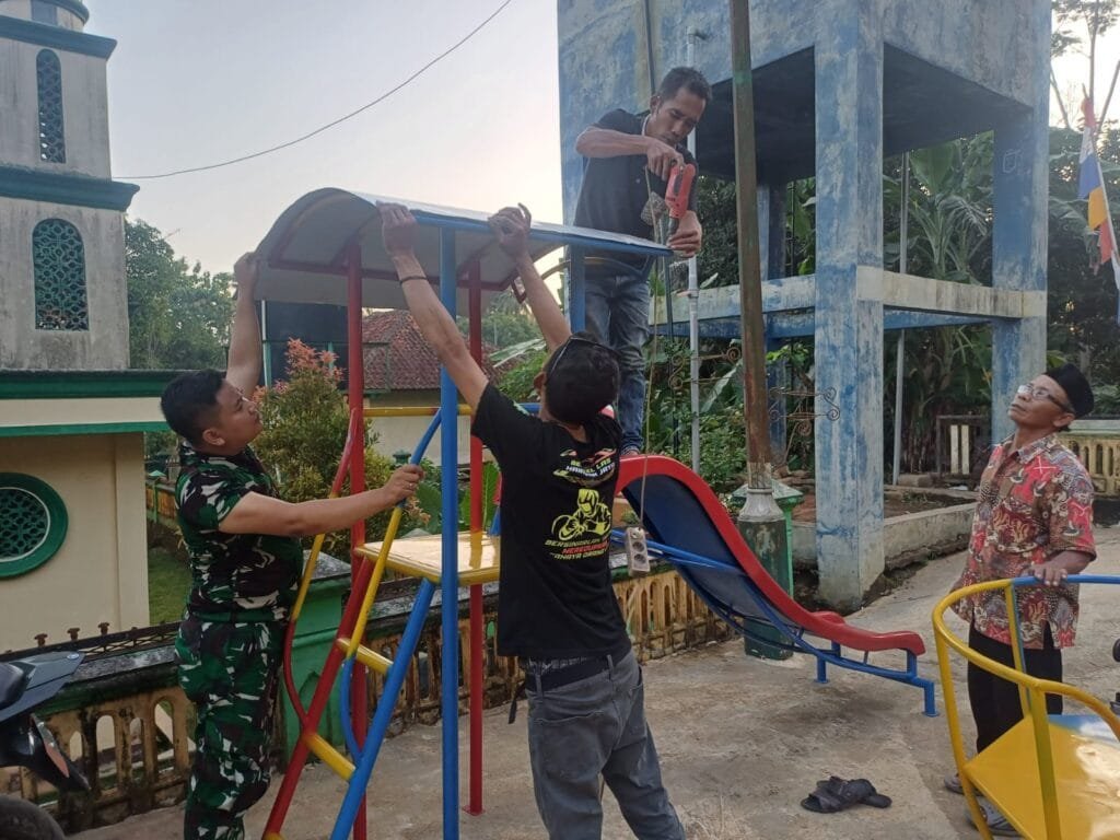 Sebanyak 4 item Alat Permainan Edukatif (APE) Luar diberikan oleh program tambahan TMMD Kodim 0612/Tsm kepada Pendidikan Anak Usia Dini (PAUD) KB Mutiara Bunda guna membantu pembelajaran dan kecerdasan anak di Dusun TarunaJaya rt017/006 Desa Pangliaran Kecamatan Pancatengah Kabupaten Tasikmalaya.