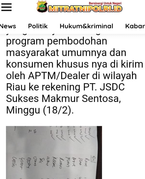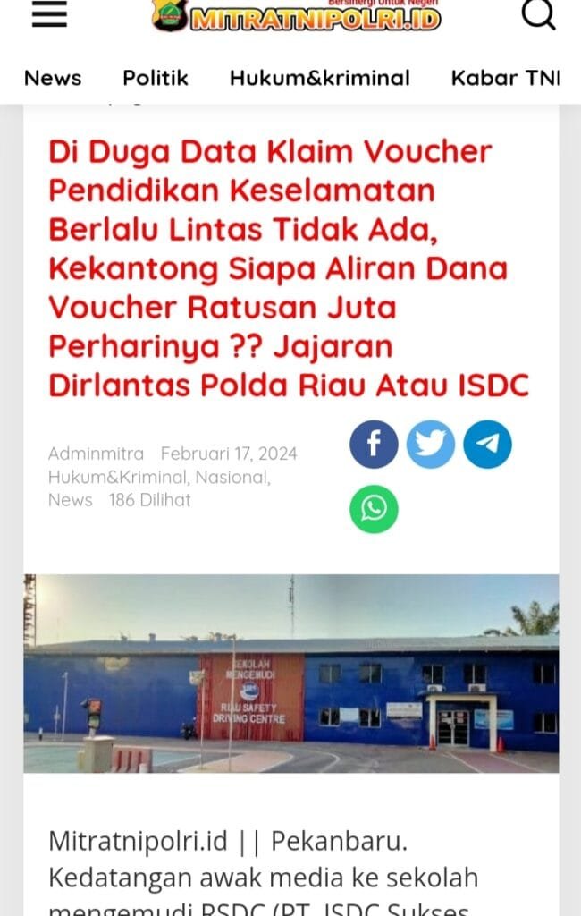 Riau-pekanbaru-Jejak Kriminal-Berita viral terbit di media Mitratnipolri.id dimana didalam pemberitaan tersebut menjelaskan Kedatangan awak media ke sekolah mengemudi RSDC (PT. JSDC Sukses Makmur Sentosa) guna menjalankan tugas sebagai jurnalis di tolak oleh Admin Sekolah mengemudi RSDC, pada Sabtu (17/2).