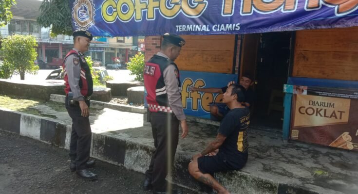 CIAMIS ~ Unit Patroli Sat Samapta Polres Ciamis Polda Jabar melaksanakan Patroli ke jalan guna memastikan tidak ada aksi premanisme di Kabupaten Ciamis. Kali ini para personel turun ke jalan mengawasi kegiatan masyarakat di kawasan Pangkalan Angkot 09, Ciamis, Kabupaten Ciamis, Jawa Barat, Selasa (3/6/2025).