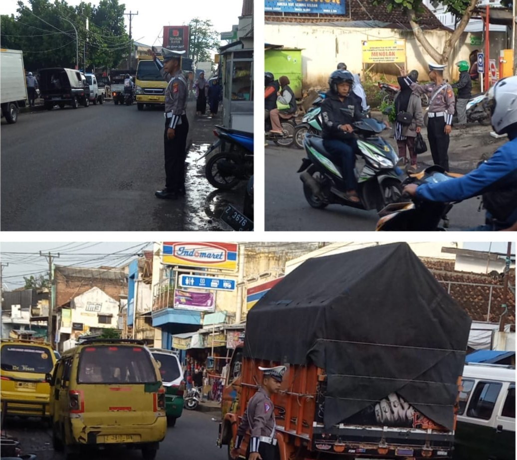 Garut.Jejak-krimimal.com-Polsek Samarang Polres Garut. melaksanakan kegiatan pengaturan lalu lintas jam rawa pagi, di jalan Raya Samarang, bertempat di pasar wisata Samarang, Minggu (09/2/2025)