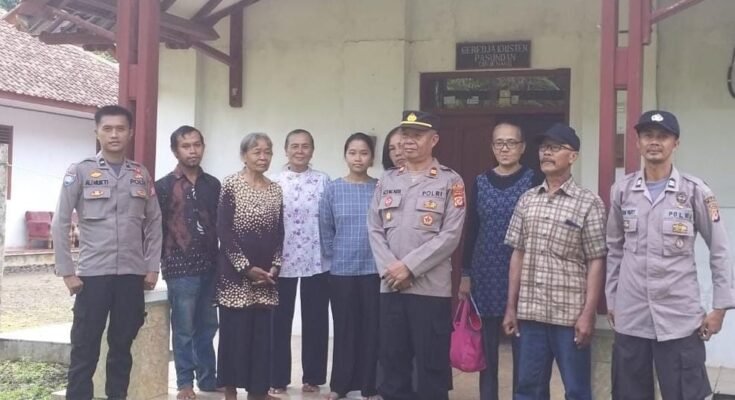 CIAMIS ~ Polres Ciamis Polda Jabar melaksanakan Pengamanan Kebaktian di Geraja wilayah hukum Polsek Cisaga dalam rangka cipta kondisi antisiapsi gangguan kamtibmas. Monitoring ini dilaksanakan di sekitar Gereja Kristen Pasundan Dusun Cinyenang Rt.023 Rw.013, Desa Sidamulih, Kecamatan Cisaga, Kabupaten Ciamis, Jawa Barat, Minggu (12/4/2025).