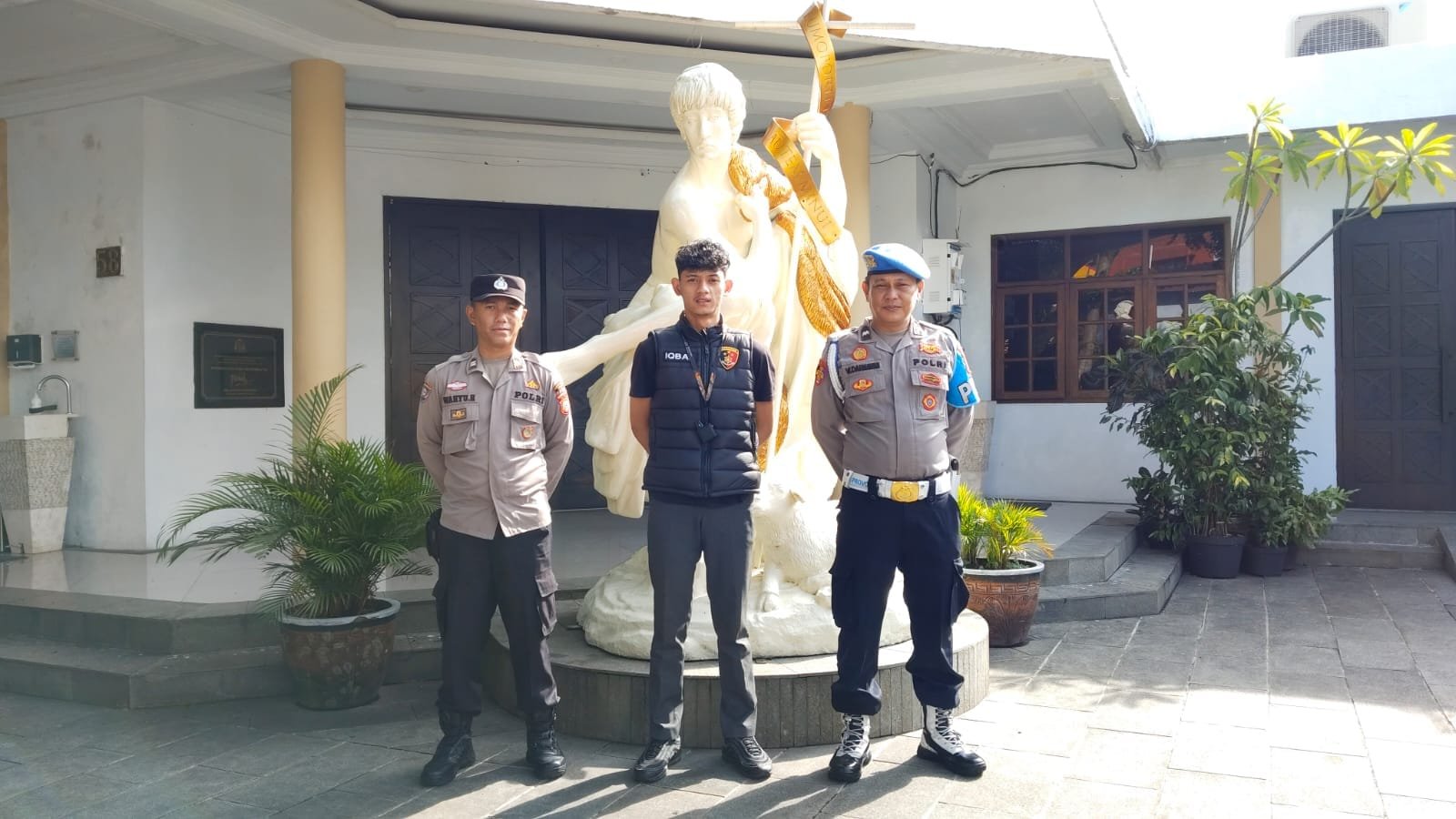 CIAMIS ~ Jajaran personel Polres Ciamis Polda Jawa Barat melaksanakan pengamanan kegiatan ibadah umat kristiani di wilayah Kabupaten Ciamis. Pengamanan ini dilaksanakan di sekitar Gereja Katolik Santo Yohanes Pembabtis Ciamis, Jl. Pemuda No.56-58, Ciamis, Kecamatan Ciamis, Kabupaten Ciamis, Jawa Barat, Minggu (12/1/2025)