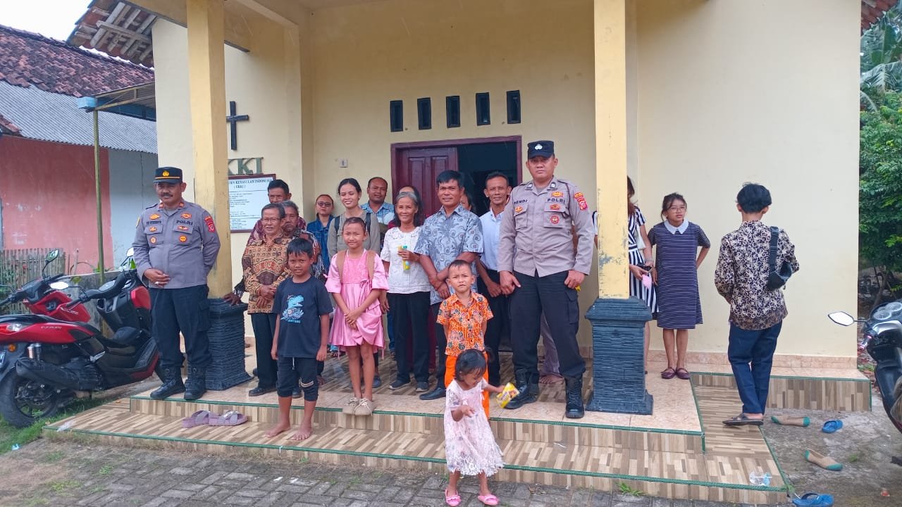 CIAMIS ~ Polres Ciamis Polda Jabar melaksanakan Pengamanan Kebaktian di Geraja di wilayah hukum Polsek Lakbok dalam rangka cipta kondisi antisipasi gangguan kamtibmas. Monitoring ini dilaksanakan di sekitar Gereja Kristen Kerasulan Indonesia (GKKI), Dusun Citamiang Rt. 12 Rw. 03, Desa Cintaratu, Kecamatan Lakbok, Kabupaten Ciamis, Jawa Barat, Minggu (3/8/2025).