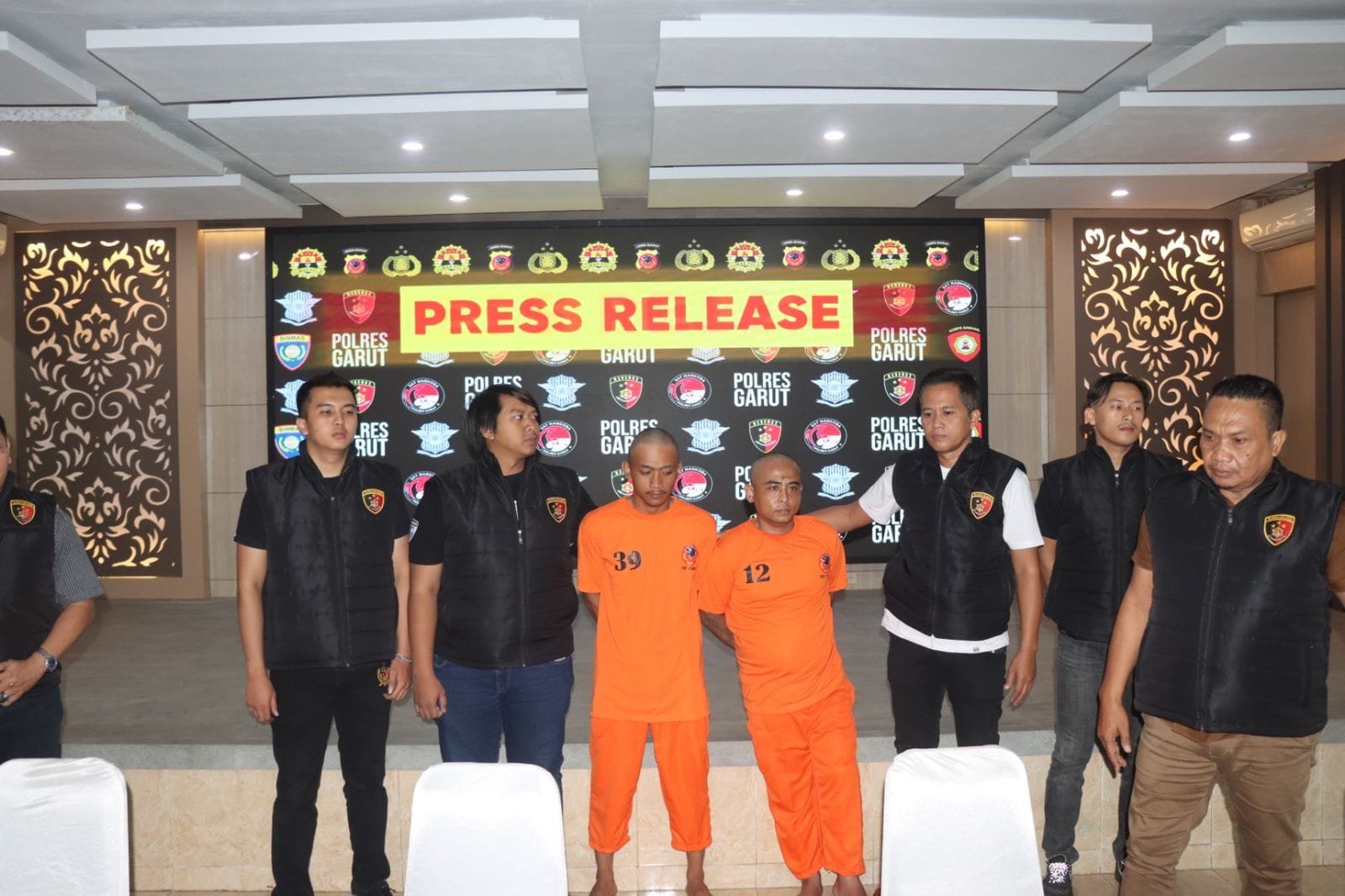 Garut – Kapolres Garut AKBP Rohman Yonky Dilatha, S.I.K., M.Si., melalui Kasat Reskrim AKP Rinaldo, S.H., menggelar press release di Aula Mumun Surachman Polres Garut untuk mengumumkan kebershasilan Polres Garut dalam penangkapan dua tersangka pembunuhan sadis kepada salah seorang warga Kabupaten Garut. Kamis pagi (09/05/2024).