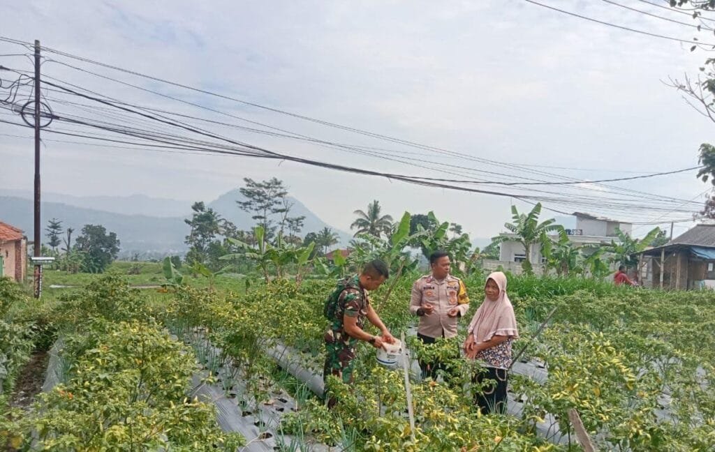 Dalam kegiatan tersebut, Bhabinkamtibmas dan Babinsa memantau langsung kondisi lahan yang seluas 500 m² dan telah ditanami sekitar 2.000 pohon cabe rawit.