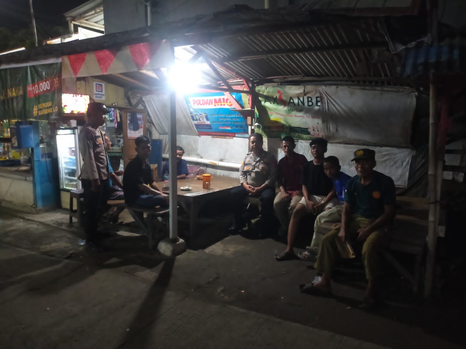 Anggota Bhabinkamtibmas Polsek Rengasdengklok Polres Karawang Polda Jabar Aiptu Nuryana Bersama Aipda Kusman melaksanakan Patroli sekaligus ngawangkong bersama Warga di Pos Kamling Dsn Krajan Desa Karyasari Kec Rengasdengklok sekaligus memberikan himbauan mengenai tindak kejahatan Curat, Curas, dan Curanmor,