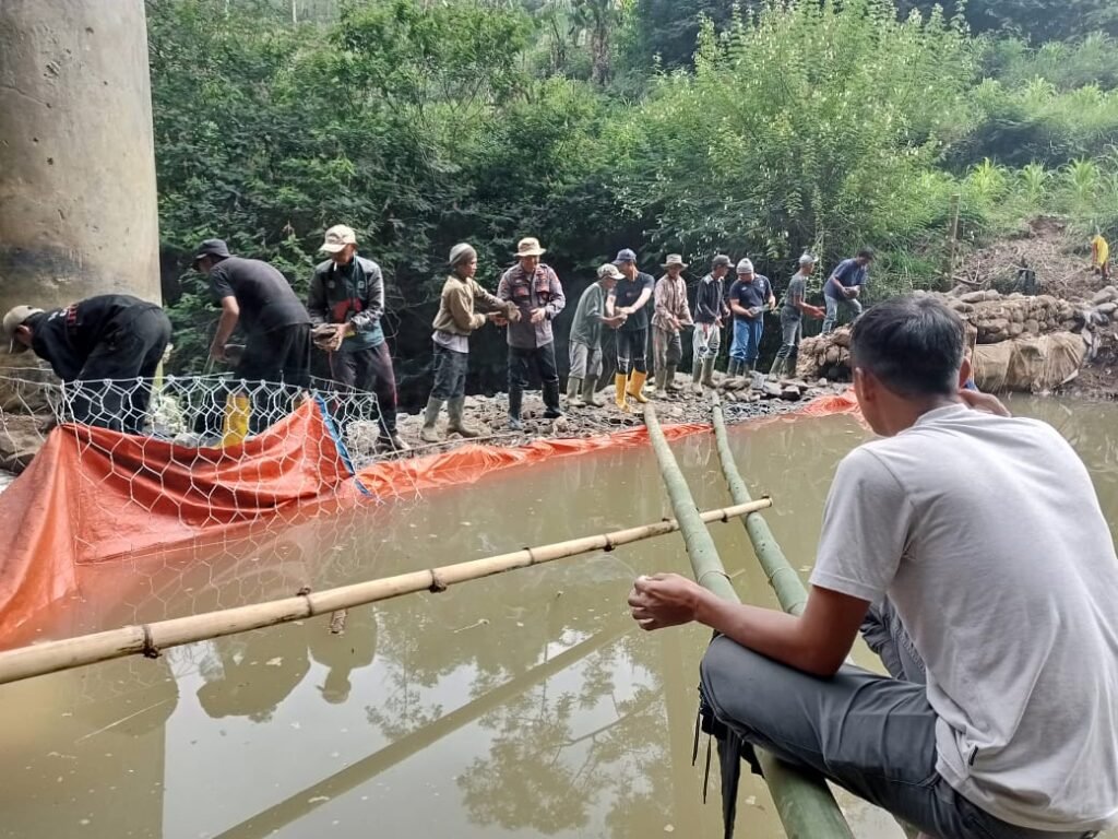 Garut – Warga Desa Sirnajaya, Kecamatan Pasirwangi, bersama dengan aparat kepolisian Polsek Pasirwangi, menggelar kegiatan gotong royong untuk mengatasi kerusakan pondasi bendungan yang jebol. Sabtu (08/02/2025).
