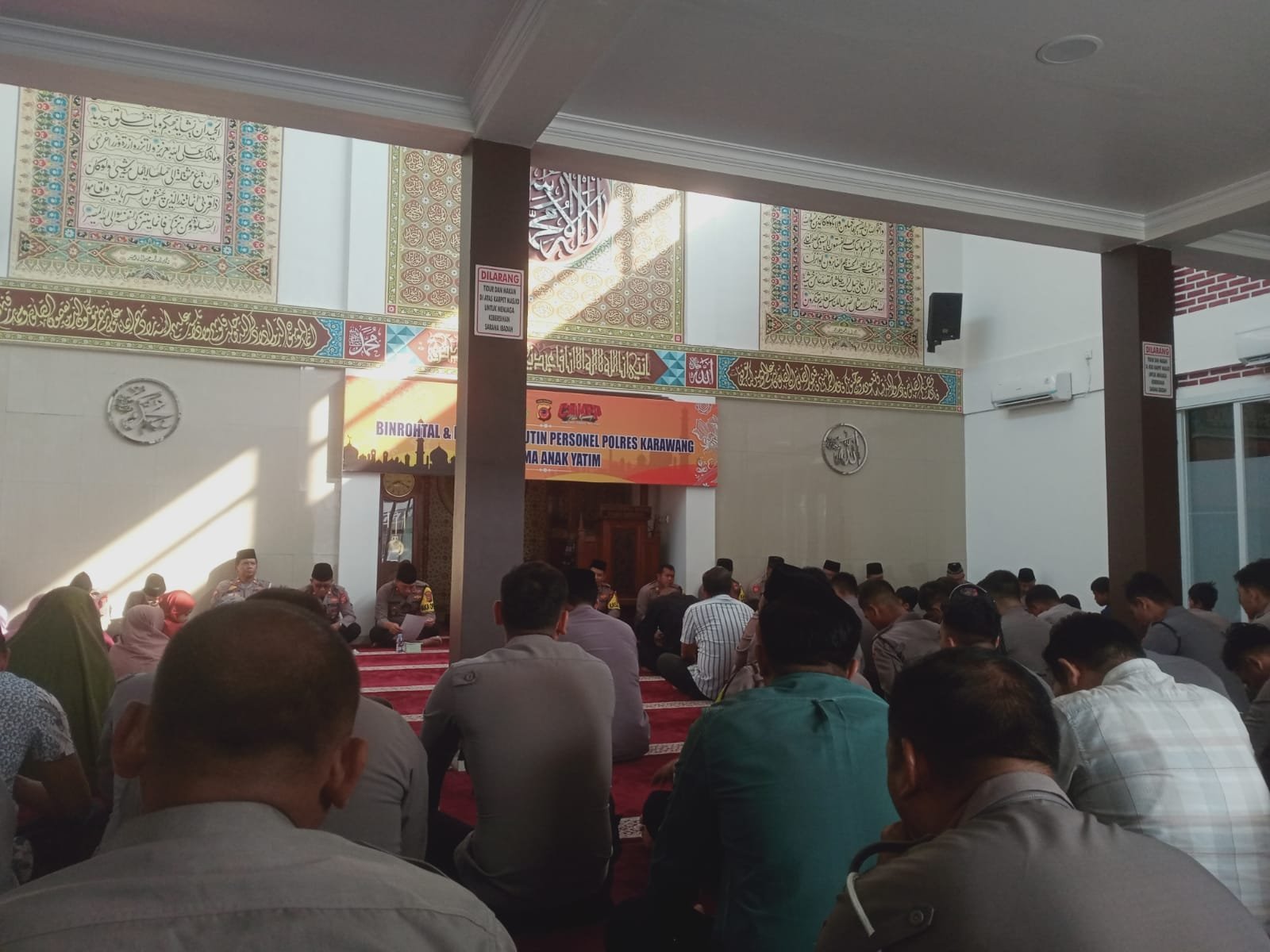 Kegiatan pembinaan rohani dan mental ini di laksanakan di Masjid Miftahul Hidayah Di Mako Polres Karawang dan di ikuti oleh WakapolPara Kabag, Kasat, para perwira, staf, serta seluruh personil Polres Karawang beserta anak yatim.