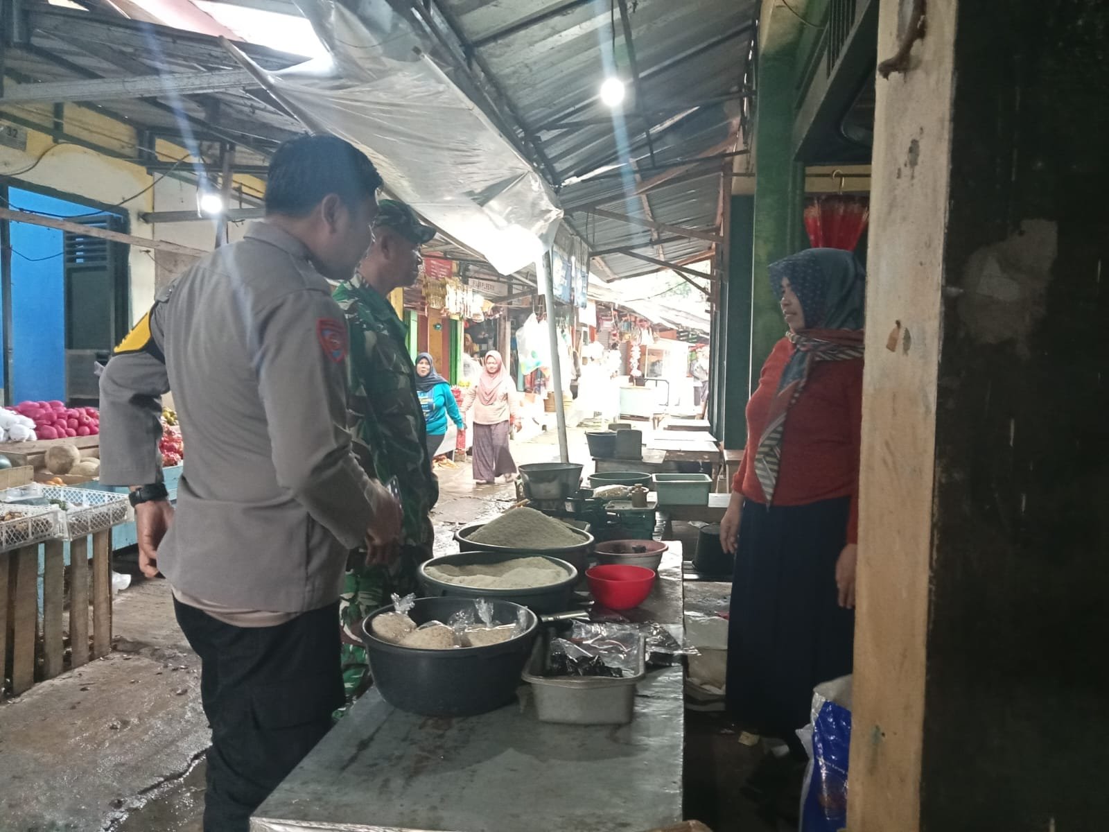 ” kegiatan yang kami lakukan ini sebagai bentuk dan peran setiap personel Babinsa dan Bhabinkamtibmas dalam mengayomi dan menjaga kenyamanan warga masyarakat melakukan aktivitasnya jual beli di Pasar untuk memenuhi kebutuhan hidup sehari-hari”. Pungkasnya.
