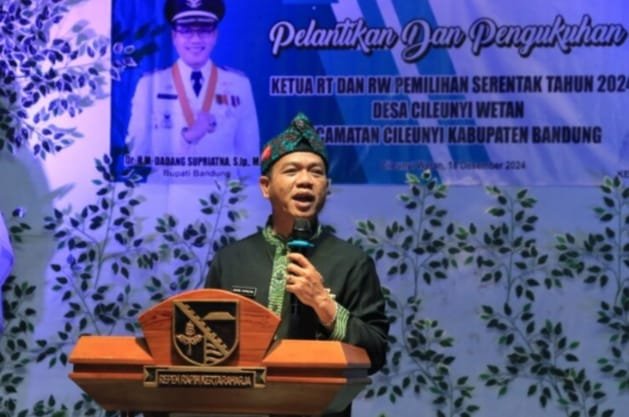 Kabupaten Bandung.Jejak-kriminal.com-Bupati Bandung Dadang Supriatna menghadiri pelantikan para Ketua RT dan RW terpilih Desa Cileunyi Wetan, di GOR Desa Cileunyi Wetan, Kecamatan Cileunyi Kabupaten Bandung, Kamis (19/12/2024).