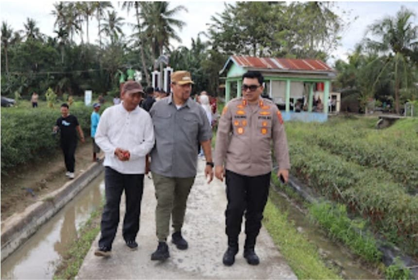 Bupati dan Kapolres Batu Bara dalam semangat kebersamaan di bulan suci Ramadhan 1446 H, Bupati Batu Bara H. Baharuddin Siagian, S.H., M.Si dan Kapolres Batu Bara AKBP Taufik Hidayat Thayeb, S.H., S.I.K., M.M melakukan kunjungan ke para petani cabai di Desa Lubuk Cuik, Kecamatan Lima Puluh Pesisir, Sabtu (8/3/2025).