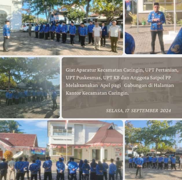 Giat Aparatur Kecamatan Caringin ,UPT Pertanian , UPT Puskesmas ,UPT KB dan Anggota Satpol PP Melaksanakan Apel Pagi Gabungan di Halaman Kantor Kecamatan Caringin.