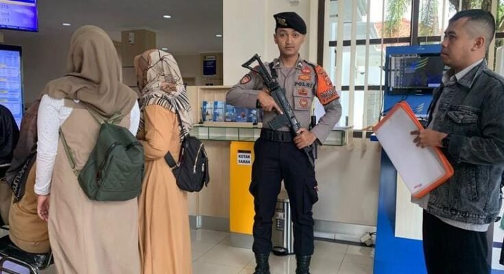 Layanan ini terus disampaikan secara intens oleh masyarakat terutama para warga yang berada di kantor Perbankan. Ini yang dilakukan oleh Anggota Sat Samapta Polres Ciamis Polda Jabar yakni Bripda Noval yang bertugas pengamanan di Bank BJB Cabang Ciamis, Kecamatan Ciamis, Kabupaten Ciamis, Jawa Barat, Selasa (25/3/2025).