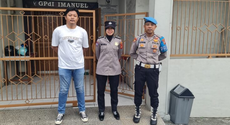 CIAMIS ~ Kapolsek Ciamis Polres Ciamis Polda Jabar Kompol Alan Dahlan memimpin langsung pelaksanaan pengamanan kegiatan keagamaan umat kristiani/nasrani di kawasan pusat kota Kabupaten Ciamis. Pengamanan ini salah satunya dilakukan pada Gereja Pantekosta di Indonesia (GPdI) Immanuel Ciamis, Jalan Ir. H. Juanda No. 231, Kelurahan Ciamis, Kecamatan Ciamis, Kabupaten Ciamis, Jawa Barat, Minggu (4/5/2025).