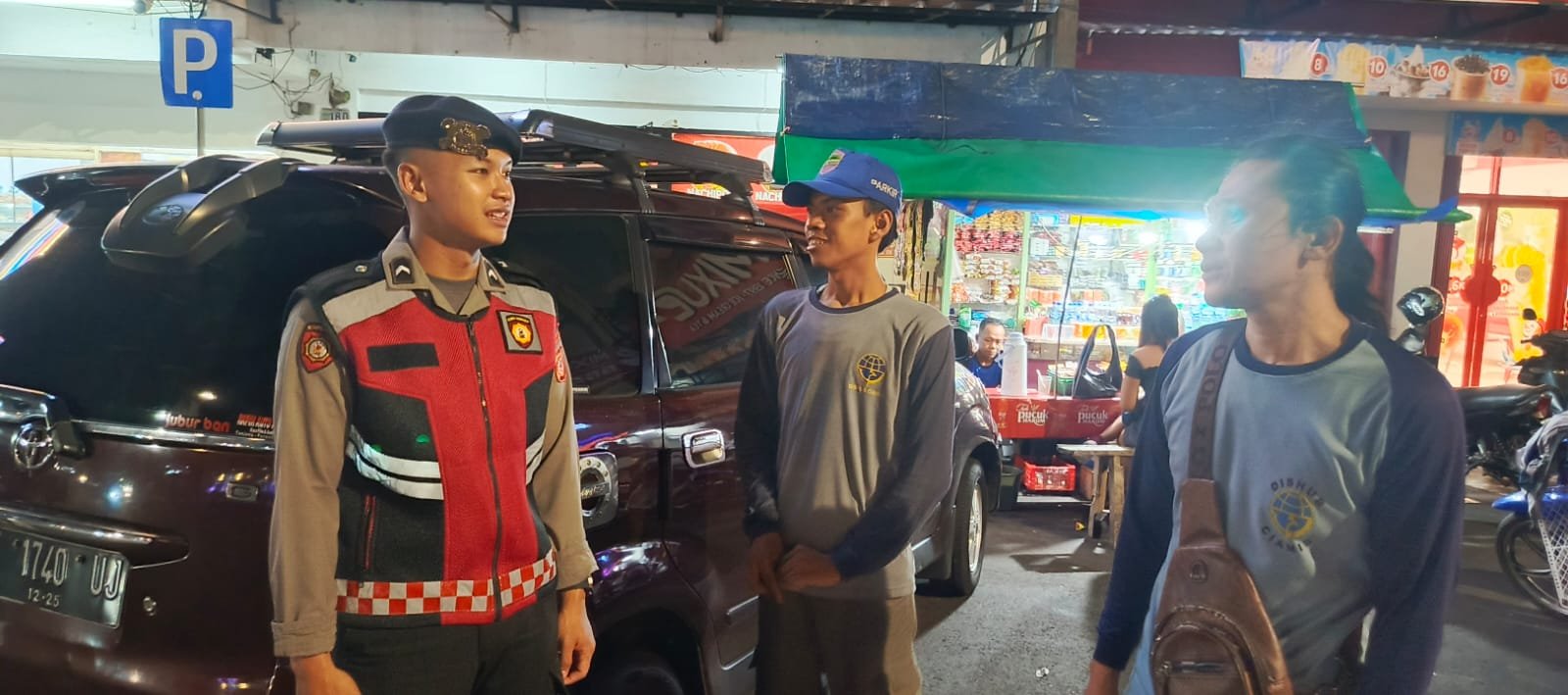 “Sebanyak tiga personel Sat Samapta berjalan kaki mendatangi setiap pedagang dan warga yang masih beraktifitas di kawasan Alun Alun Ciamis. Mereka hadir untuk memberikan pesan-pesan kamtibmas, terutama kejahatan jalanan, terutama di waktu rawan,” ujar Kasat Samapta Polres Ciamis Polda Jabar Iptu Zezen Zaenal Mutaqin