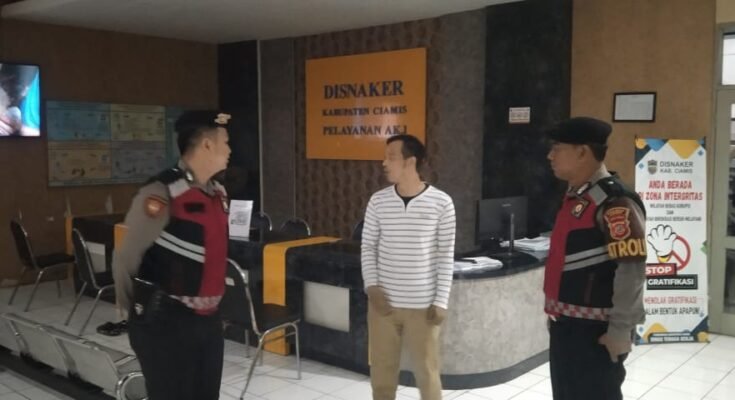 CIAMIS ~ Personel Satuan Samapta Polres Ciamis Polda Jabar melaksanakan Patroli objek vital dalam rangka cipta kondisi antisipasi gangguan kamtibmas. Patroli tersebut dilaksanakan secara mobile oleh unit patroli Sat Samapta Polres Ciamis Polda Jabar, dan menyambangi Kantor Disnaker Ciamis, Kabupaten Ciamis, Jawa Barat, Senin, 7 Juli 2025, malam.