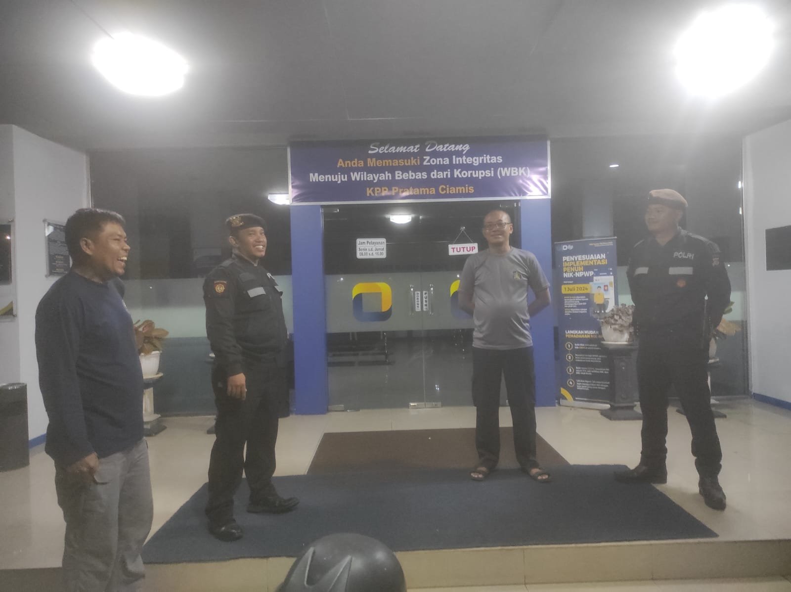 CIAMIS ~ Personel Satuan Samapta Polres Ciamis Polda Jabar melaksanakan Patroli objek vital dalam rangka cipta kondisi antisipasi gangguan kamtibmas saat malam hari. Patroli tersebut dilaksanakan secara mobile oleh unit patroli Sat Samapta Polres Ciamis Polda Jabar, dan menyambangi Kantor Pajak Ciamis, Kabupaten Ciamis, Jawa Barat, Minggu (17/11/2024), dini hari.