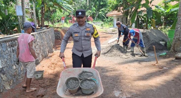 CIAMIS ~ Personel Polsek Sukadana Polres Ciamis Polda Jabar melaksanakan kegiatan humanis dengan hadir memonitoring sekaligus ikut serta bergotong royong dalam pembangunan saluran irigasi di lingkungan masyarakat. Pekerjaan ini berada di Dusun Pasir Bentang, Desa Salakaria, Kecamatan Sukadana, Kabupaten Ciamis, Jawa Barat, Jumat (2/5/2025).