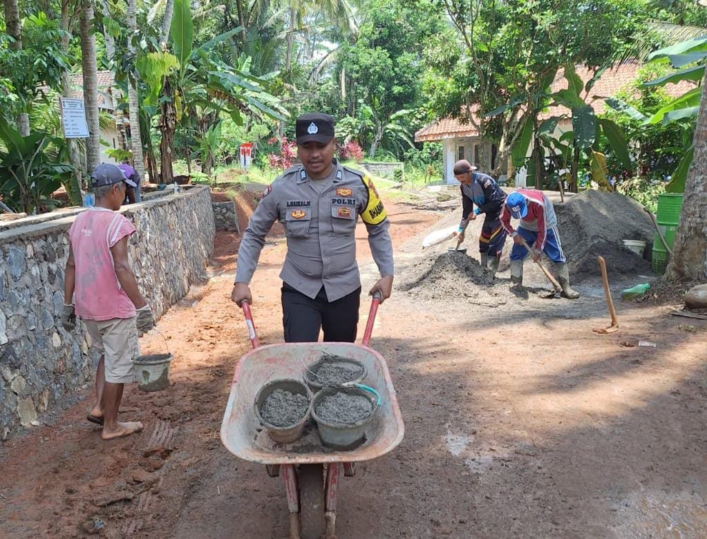 CIAMIS ~ Personel Polsek Sukadana Polres Ciamis Polda Jabar melaksanakan kegiatan humanis dengan hadir memonitoring sekaligus ikut serta bergotong royong dalam pembangunan saluran irigasi di lingkungan masyarakat. Pekerjaan ini berada di Dusun Pasir Bentang, Desa Salakaria, Kecamatan Sukadana, Kabupaten Ciamis, Jawa Barat, Jumat (2/5/2025).