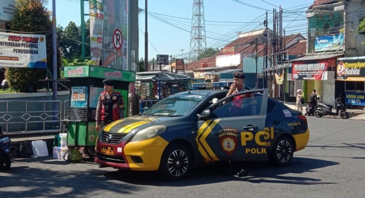 CIAMIS ~ Personel Satuan Samapta Polres Ciamis Polda Jabar melaksanakan patroli dialogis dalam rangka cipta kondisi aksi tindak kriminalitas di tempat keramaian masyarakat. Patroli kali ini dilaksanakan di kawasan Simpang Empat Jalan Perintis Kemerdekaan, Kecamatan Ciamis, Kabupaten Ciamis, Jawa Barat, Sabtu (12/7/2025).