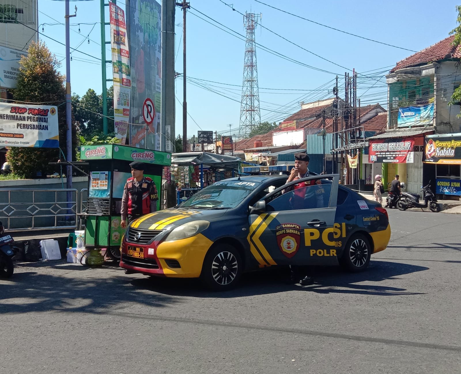 CIAMIS ~ Personel Satuan Samapta Polres Ciamis Polda Jabar melaksanakan patroli dialogis dalam rangka cipta kondisi aksi tindak kriminalitas di tempat keramaian masyarakat. Patroli kali ini dilaksanakan di kawasan Simpang Empat Jalan Perintis Kemerdekaan, Kecamatan Ciamis, Kabupaten Ciamis, Jawa Barat, Sabtu (12/7/2025).