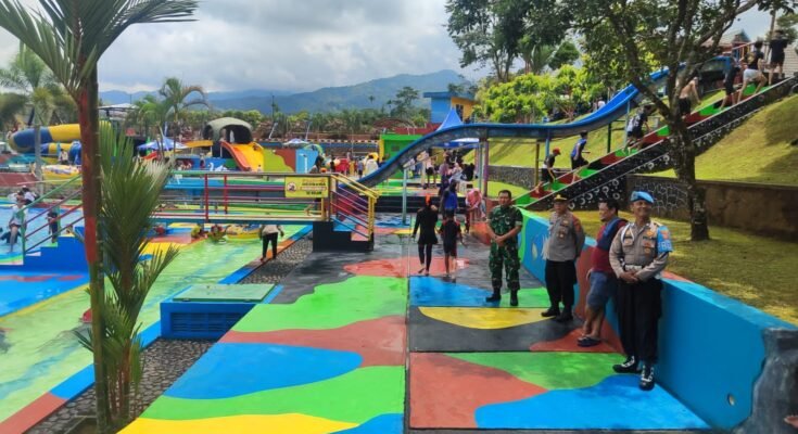 CIAMIS ~ Personel Polsek Cipaku Polres Ciamis Polda Jabar melaksanakan kegiatan monitoring sekaligus pengamanan di kawasan Obyek Wisata saat libur panjang Lebaran 2025. Pemantauan ini dilaksanakan di area obyek wisata air, Waterboom Cipangalun, Desa Jalatrang, Kecamatan Cipaku Kabupaten Ciamis, Jawa Barat, Senin (7/4/2025).