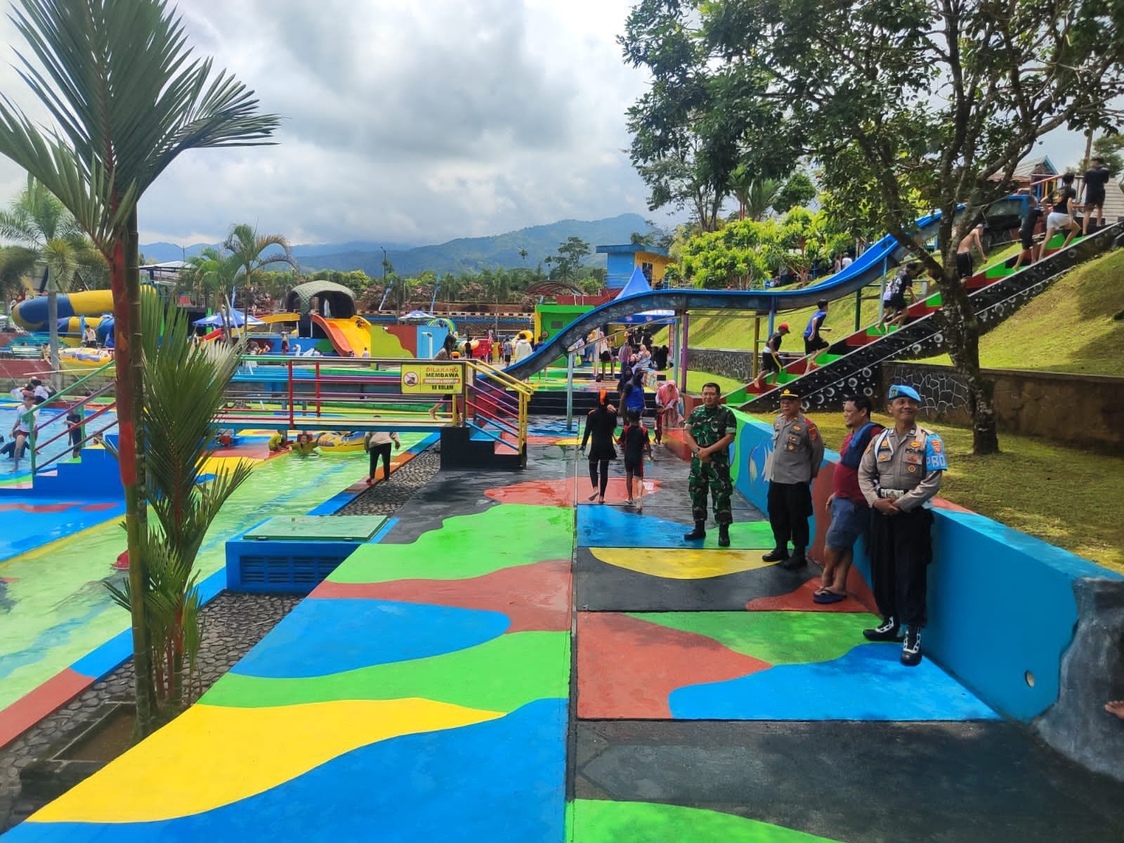 CIAMIS ~ Personel Polsek Cipaku Polres Ciamis Polda Jabar melaksanakan kegiatan monitoring sekaligus pengamanan di kawasan Obyek Wisata saat libur panjang Lebaran 2025. Pemantauan ini dilaksanakan di area obyek wisata air, Waterboom Cipangalun, Desa Jalatrang, Kecamatan Cipaku Kabupaten Ciamis, Jawa Barat, Senin (7/4/2025).