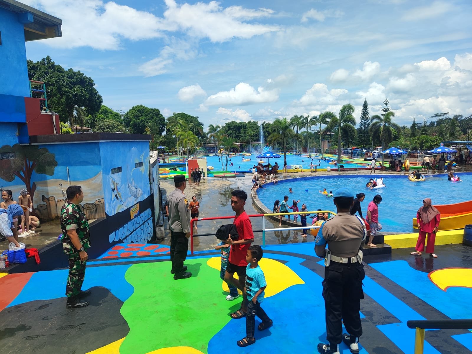 CIAMIS ~ Personel Polsek Cipaku Polres Ciamis Polda Jabar melaksanakan kegiatan monitoring sekaligus pengamanan di kawasan Obyek Wisata saat libur panjang Lebaran 2025. Pemantauan ini dilaksanakan di area obyek wisata air, Waterboom Cipangalun, Desa Jalatrang, Kecamatan Cipaku Kabupaten Ciamis, Jawa Barat, Sabtu (5/4/2025).