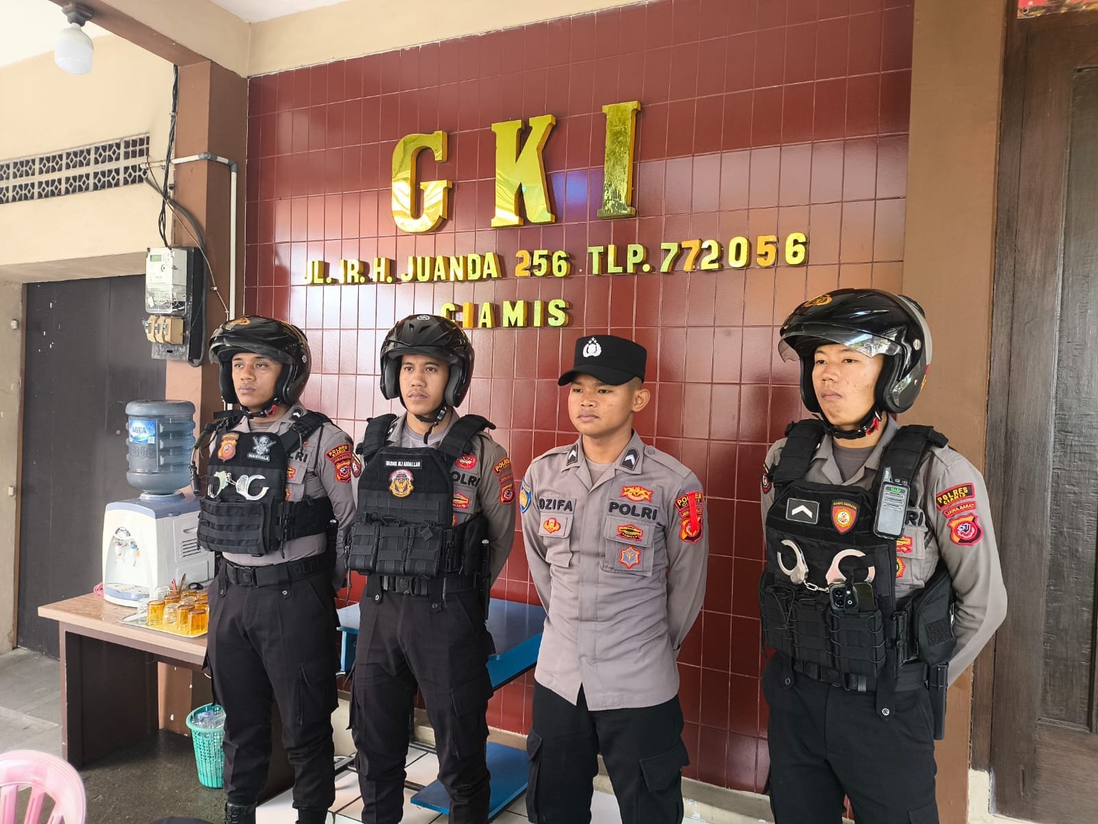Dimana anggota hadir melakukan koordinasi dengan personel Piket Pos Pelayanan dan Petugas Keamanan Gereja Kristen Indonesia (GKI) Ciamis terkait situasi kamtibmas terkini sebagai bentuk deteksi dini agar tidak timbul di masyarakat.