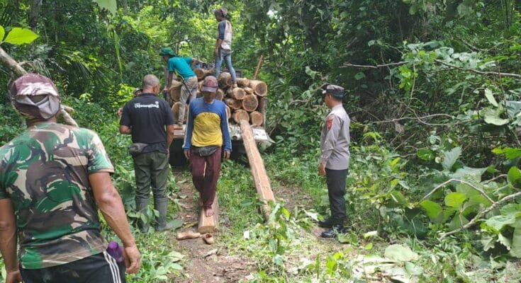 Salah satunya itu dilaksanakan jajaran Polsek Cisaga Polres Ciamis Polda Jabar. Saat itu anggota Polri mendatangi masyarakat dan petugas Perhutani yang sedang melakukan aktifitas penebangan kayu di Lahan Kerja Perum Perhutani BKPH Banjar Utara, Desa Wangunjaya, Kecamatan Cisaga, Kabupaten Ciamis, Jawa Barat, Sabtu (11/1/2025).