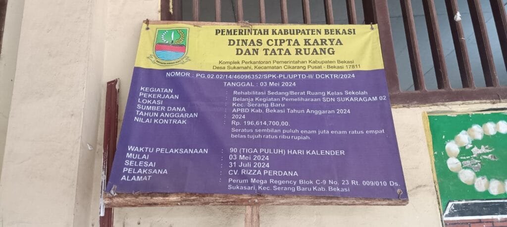KAB.BEKASI, Jejak-Kriminal.com -Serang Baru, 12 Juni 2024 – Proyek pembangunan SDN 02 Sukaragam yang dikerjakan oleh CV RIZZA PERDANA menuai kritik keras dari Lembaga Swadaya Masyarakat (LSM) Perkara.
