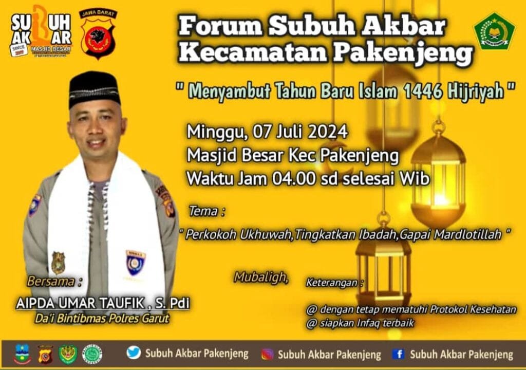 Garut | Dai Kamtibmas Polres Garut Aipda Umar memberikan ceramah dalam kegiatan Shubuh Akbar di Masjid besar Pakenjeng Desa Jatiwangi Kecamatan Pakenjeng Kabupaten Garut. Minggu (7/7/2024).