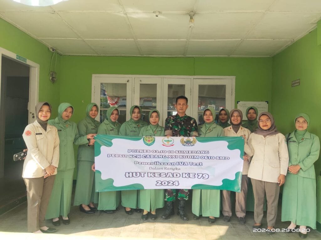 Sumedang- Dalam rangka memperingati HUT Kesad ke 79, KLINIK FKTP POLKES 03.10.10 SUMEDANG bekerjasama dengan PKM Sumedang Selatan mengadakan pemeriksaan SADANIS dan IVA Tes untuk deteksi dini kanker payudara dengan sasaran Anggota Persit KCK Cabang XXI Kodim 0610 Sumedang bertempat Di POLKES 03.10.10 SUMEDANG. Kamis(29/08/2024)