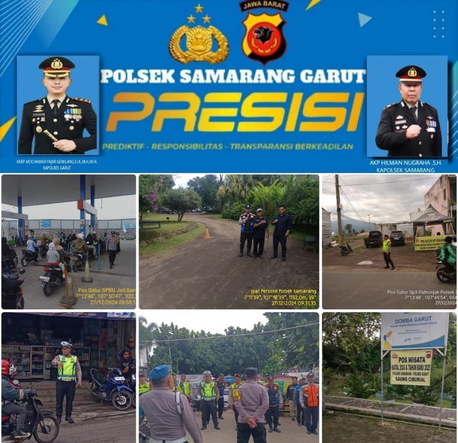 Polres Garut AKBP Mochamad Fajar Gemilang.,S.I.K.M.H.M.I.K. Melalui Kapolsek Samarang, AKP Hilman Nugraha.,S.H.,M.H. bersama jajaran personel Polsek Samarang, yakni Aiptu Sugiono, Aipda Eva Nurdiana, Aipda Willy Gahara, Bripka Gugun Guntiar, Bripka Ramdhani Prabowo, Bripka Wendi Supriadi, dan Bripka Joko Dwi Prasetyo, melaksanakan pengamanan arus lalu lintas dengan tujuan untuk meminimalisir kemacetan. Mereka juga memberikan arahan untuk memberhentikan atau memutar arah kendaraan dengan muatan barang yang memiliki lebih dari tiga sumbu, kecuali untuk pengiriman sembako. Selain itu, petugas juga aktif memberikan pelayanan dan kenyamanan kepada pengunjung tempat wisata serta mengantisipasi parkir liar di sekitar lokasi wisata.”Ujar Kapolsek Samarang AKP Hilman Nugraha.,SH.,MH.