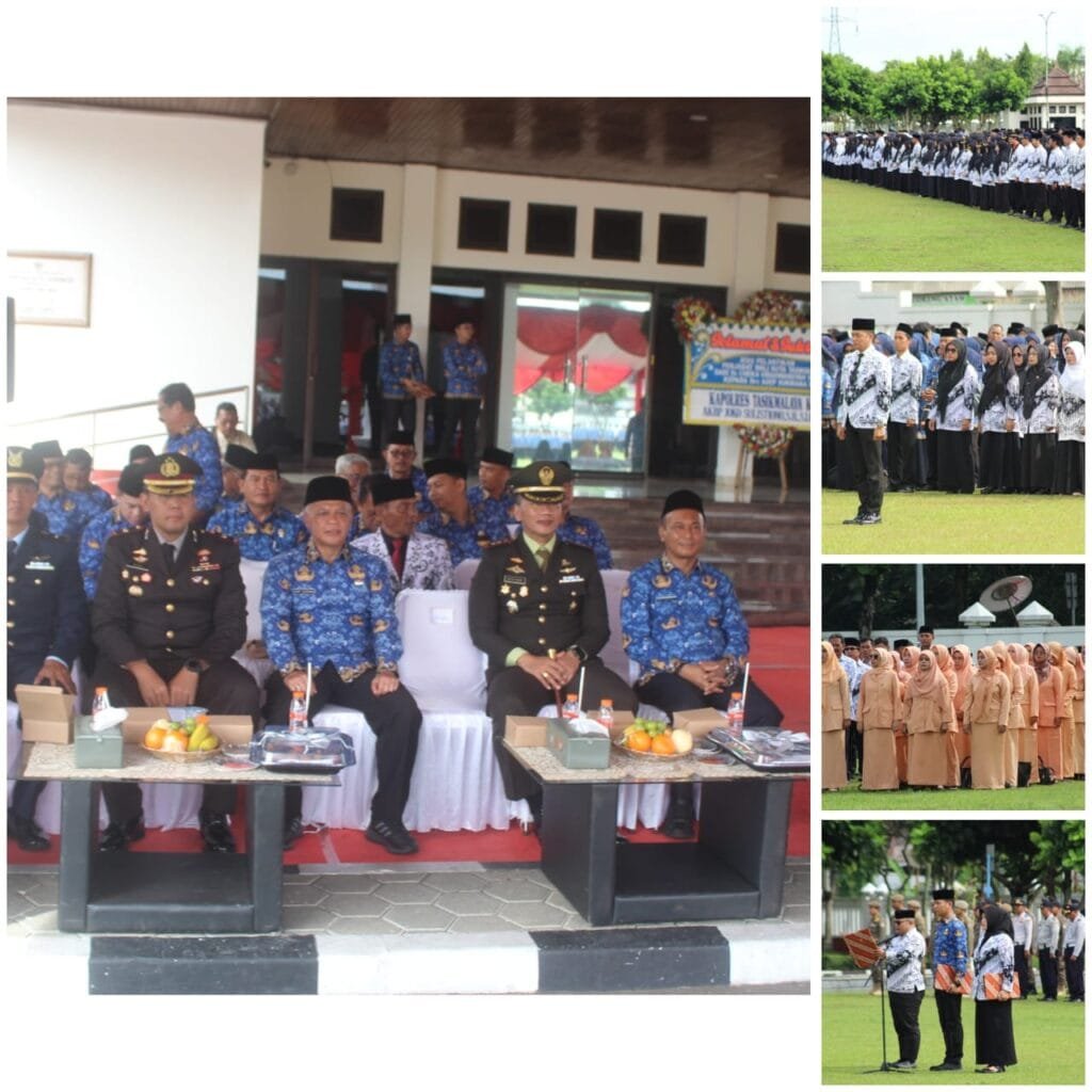 Upacara dipimpin langsung oleh Penjabat Wali Kota Tasikmalaya, Drs. Asep Sukmana, M.Si., yang bertindak sebagai inspektur upacara (irup). Dalam sambutannya, beliau menekankan pentingnya kolaborasi dan semangat pengabdian dari seluruh elemen, baik anggota KORPRI, guru yang tergabung dalam PGRI, maupun para anggota Dharma Wanita, dalam mendukung pembangunan Kota Tasikmalaya.