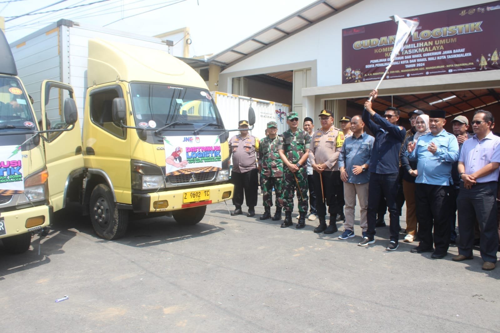 Logistik yang didistribusikan meliputi 1.116.008 lembar surat suara (untuk pemilihan gubernur dan wali kota), 1.970 kotak suara, serta 3.940 bilik suara. Pengiriman menggunakan delapan unit armada JNE Express yang dilepas secara simbolis oleh Komisioner Divisi Teknis KPU Kota Tasikmalaya, Aliferi, SE.