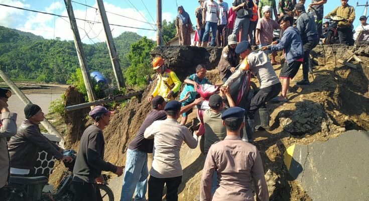 Sukabumi, 8 Maret 2025– Banjir bandang yang melanda wilayah Kabupaten Sukabumi menyebabkan putusnya jembatan di Kampung Bojong Kopo, Desa Cidadap, Kecamatan Simpenan. Menyikapi situasi darurat ini, Dansat Brimob Polda Jabar, Kombes Pol. Donyar Kusumadji, S.I.K., turun langsung ke lokasi untuk memastikan kelancaran evakuasi dan membantu masyarakat yang terdampak.