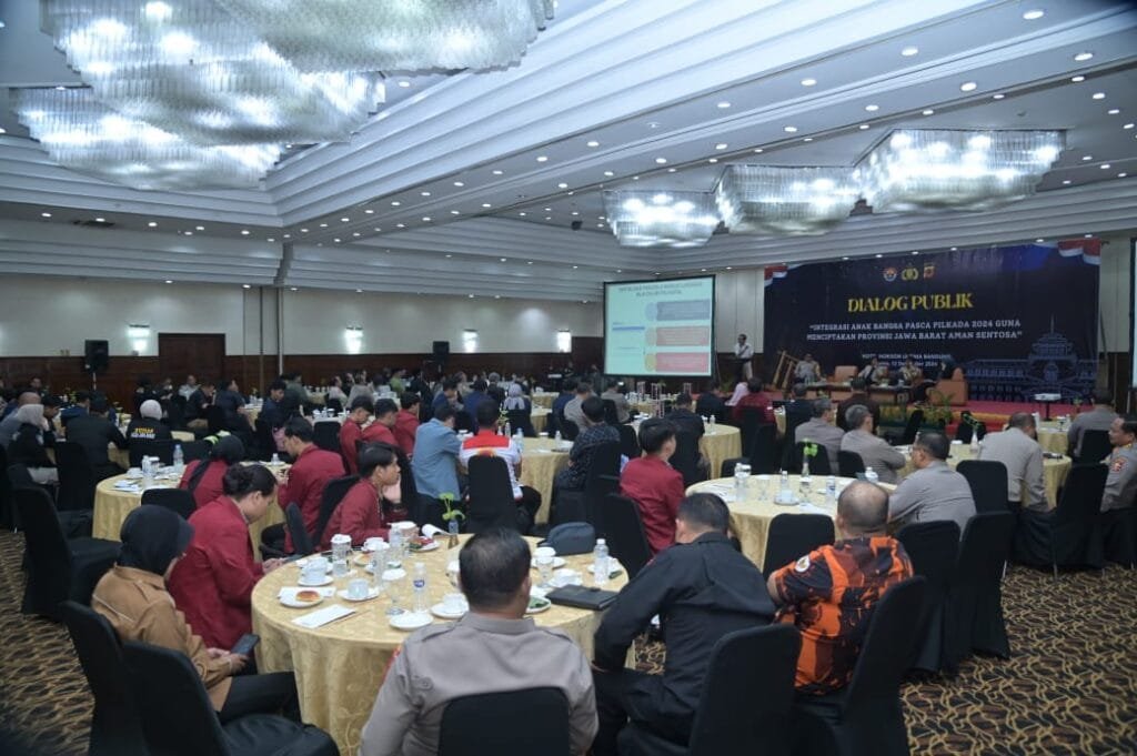 Jabar_Jejak-kri.inal.com- Bertempat di Hotel Horison Ultima Bandung, telah digelar acara dialog publik dengan tema “Integrasi Anak Bangsa Pasca Pilkada 2024 Guna Menciptakan Provinsi Jawa Barat Aman Sentosa”. Acara ini dihadiri oleh sekitar 200 peserta dari berbagai kalangan, termasuk perwakilan Polri, TNI, tokoh agama, ormas, dan mahasiswa dari berbagai universitas di Jawa Barat.Kamis (12/12/2024)