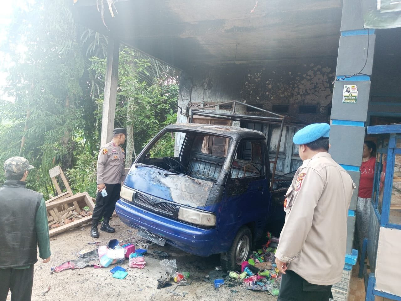 Kebakaran tersebut menghanguskan satu unit kendaraan mobil Suzuki Futura pick up dengan nomor Polisi Z 8865 DV, yang berisikan barang dagangan berbahan plastik dan perabotan rumah tangga lainnya. Posisi kendaraan yang terbakar berada di dalam garasi rumah korban.