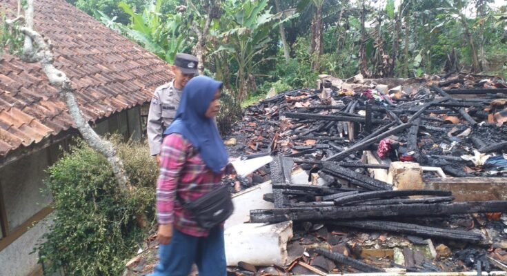 CIAMIS ~ Personel Polsek Cipaku Polres Ciamis Polda Jawa Barat mendatangi lokasi kejadian kebakaran sebuah rumah di wilayah Desa Selamanik. Tepatnya di Dusun Cikembang Rt. 05 Rw. 15, Desa Selamanik, Kecamatan Cipaku, Kabupaten Ciamis, Jawa Barat, Minggu, 6 April 2025, kemarin.